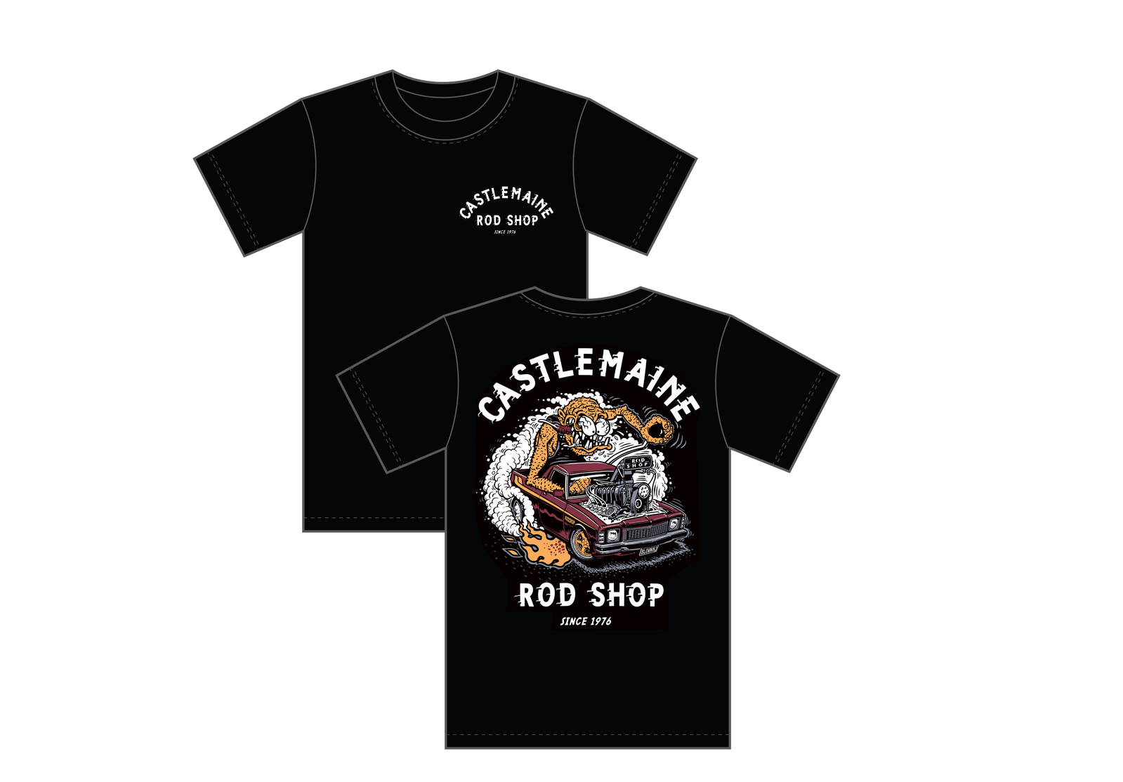 Castlemaine Rod Shop T-Shirt - GEE WIZ Burnout Car