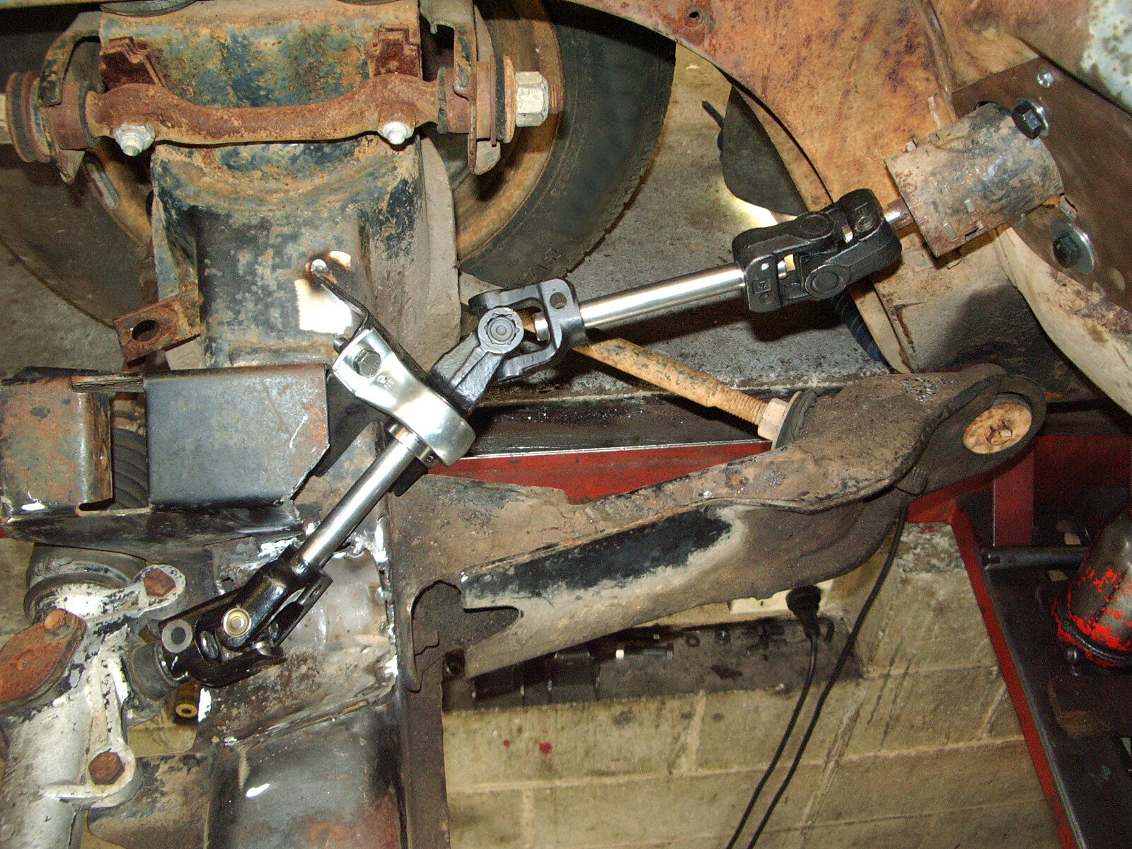 A special bracket and bearing support kit to allow 3 steering universals needs to be used, the Drivers side engine mount will need a small section cut from it to allow the weld on bracket to fit.